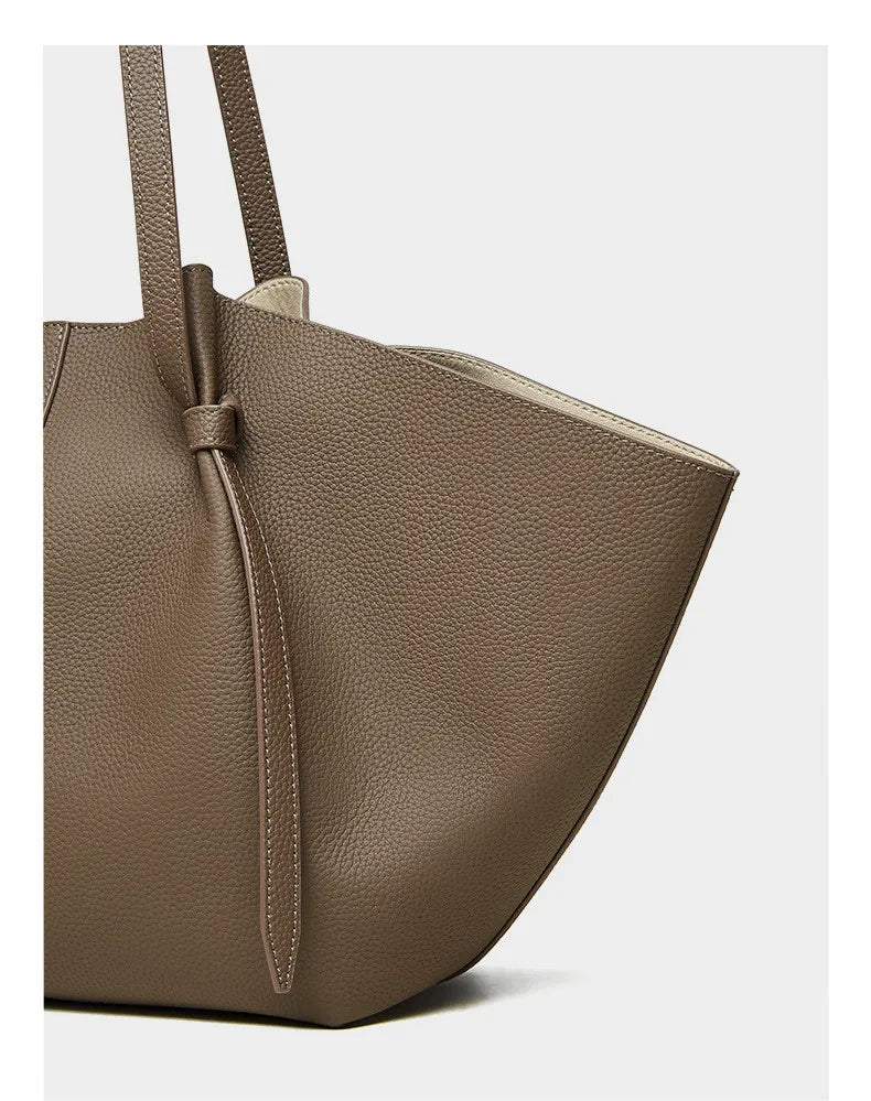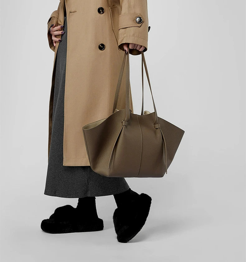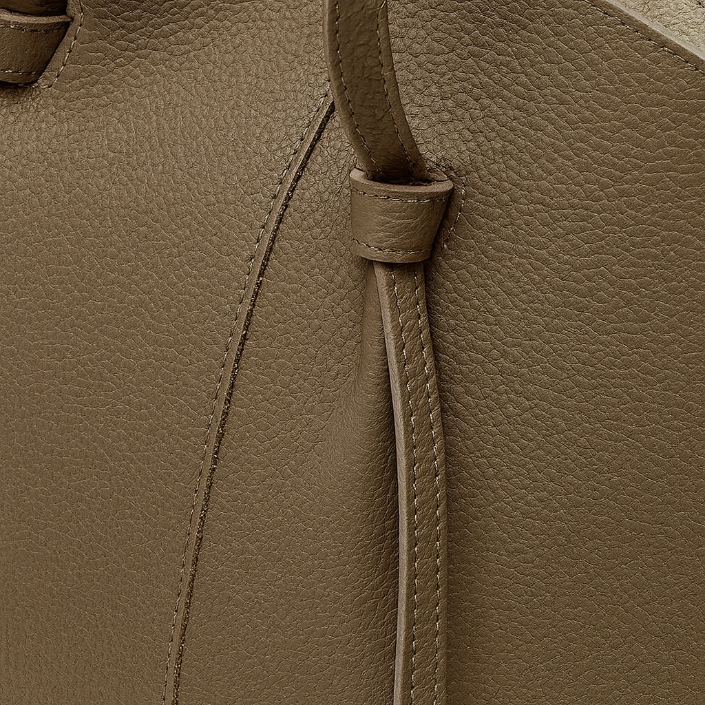 Møt Estrid , en elegant og sofistikert veske i ekte skinn , designet for å løfte ethvert antrekk – fra hverdag til kveld. Med sine myke linjer og struktur i naturlig taupe skinn , legemliggjør Estrid skandinavisk enkelhet med et snev av luksus.
