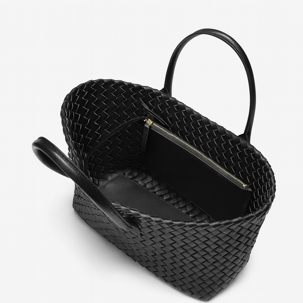 Laget av ekte skinn med en vakker, håndvevd overflate som gir vesken et sofistikert og moderne utseende. Innsiden er foret med slitesterkt PU-skinn for økt holdbarhet og enkel rengjøring.