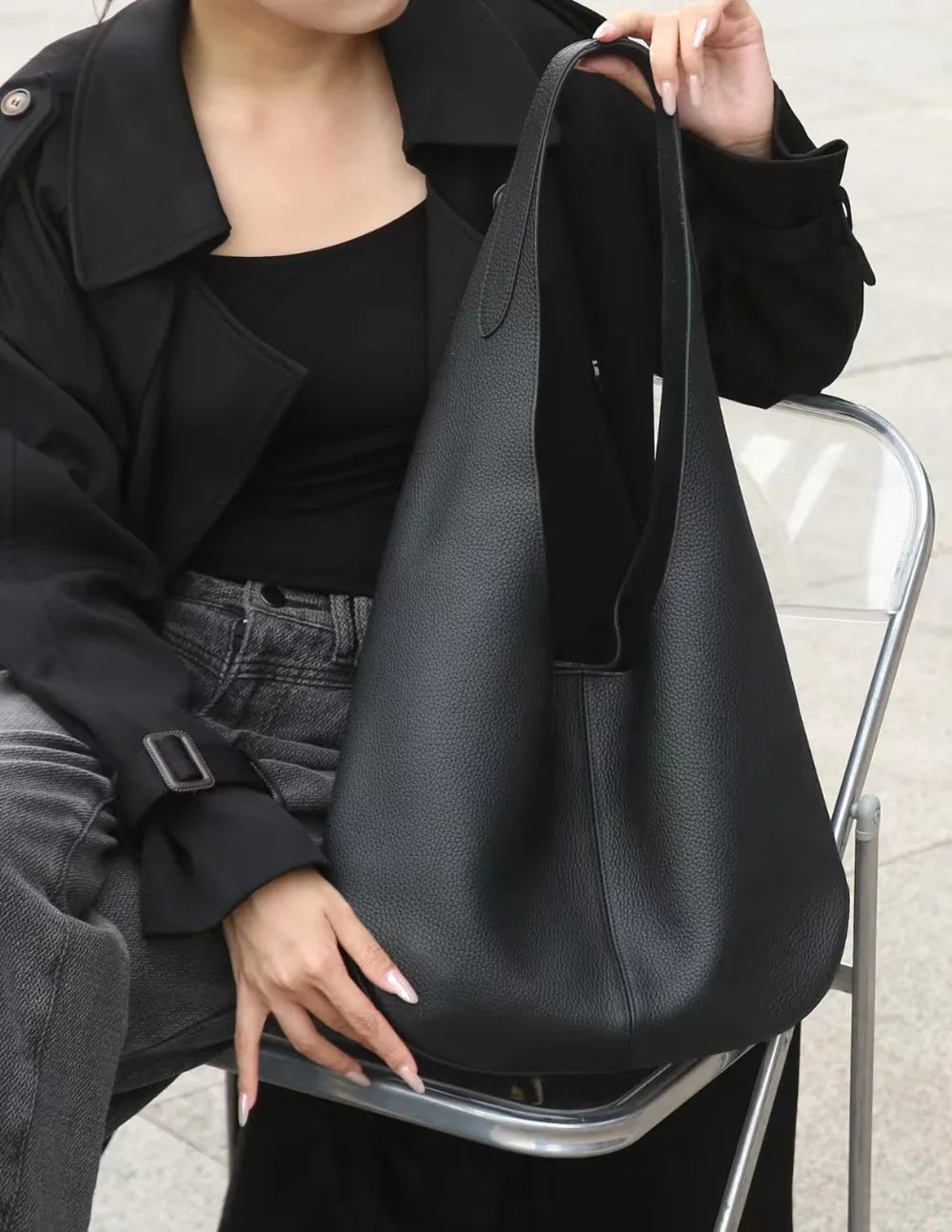 Hanna er en stilig skulderveske i matt svart skinn som kombinerer eleganse og funksjon. Den har et mykt og smidig design og har akkurat passe plass til dine daglige nødvendigheter. Med sitt minimalistiske utseende passer den til både hverdags og festlige anledninger.